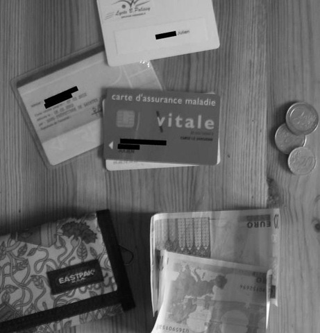 Dans mon portefeuille il y a donc 30 euros qui on cette forme particulière qu'il leurs donnent, des cartes (self du bahut, d'identité...) 2 euros et 70.